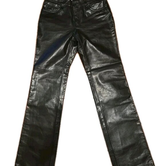 The product is a pair of genuine leather bootcut pants in black, designed for women and size 2. These pants feature a bootcut leg style and come with a lining for added comfort and quality. Made by Gap, the pants offer a stylish and versatile option for women looking for a chic addition to their wardrobe.