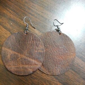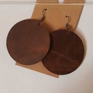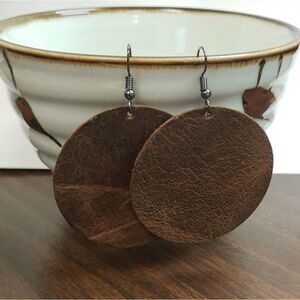 Genuine Leather hide Brown Circle Disc Cut-Out earrings 2" diameter