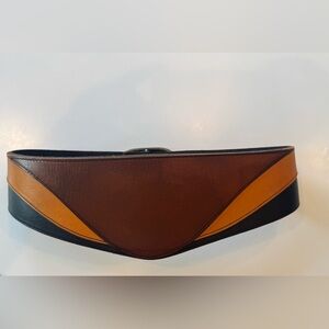 Genuine Leather wide color blocked belt with back buckle. Adjustable