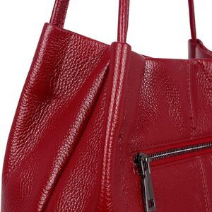 Genuine leather shoulder bag with one large open pocket, 1 smaller compartment, 1 zipper inner pocket, 1 phone pocket and ID card slot and 1 Rear zipper pocket. Size: (L)9.75*(H)11.7*(W)6.24”