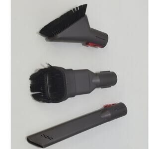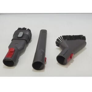 Included is a crevice tool attachment, mini dusting brush, and mini cord brush. Made from lightweight, durable plastic and finished in a sleek matte gray, these tools make cleaning hard-to-reach spots and delicate surfaces a breeze. The click-lock system ensures a secure fit, and the brushes are easy to clean and dryable for long-lasting use. Whether you need to reach tight spaces or gently dust your electronics, this set has got you covered. Our Inv# VAC 006