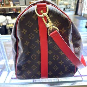 Genuine Louis Vuitton Carry On Bag Red Monogram Canvas Keepall Bandouliere 50