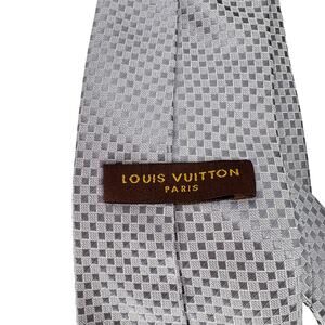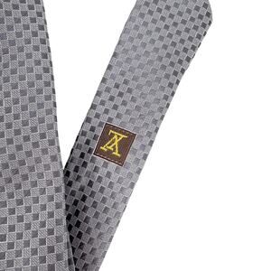 Genuine Louis Vuitton Light Gray Silk Tie With LV Logo