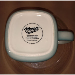 Not one of the many cheap knock-offs on the market. This is branded with the genuine Mason trademark. Hefty 20 ounce mug is dishwasher/microwave safe. Ideal for that special person who's tired of "little sissy mugs." Preowned with no sign of use.