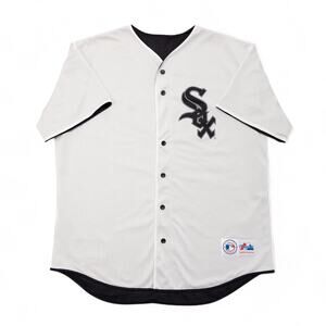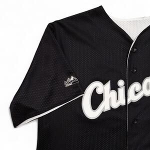 Show your team pride with this awesome Chicago baseball jersey! This black and white jersey from Genuine Merchandise Majestic is perfect for any fan, whether you're at the game or just hanging out. Made with high-quality materials, this relaxed fit jersey is comfortable and durable, ready for game day or everyday wear. This sporty jersey is in good condition and ready to be worn. Get ready to cheer on your team in style!