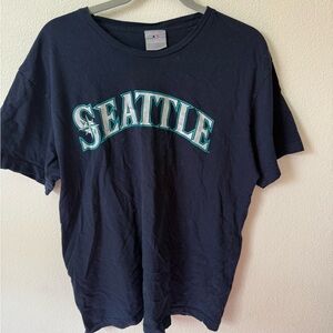Black t-shirt with 'Seattle' graphic. Comfortable and casual style.