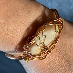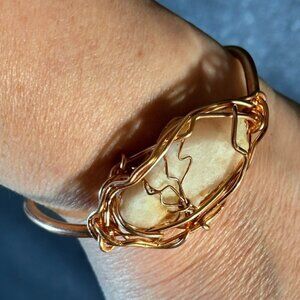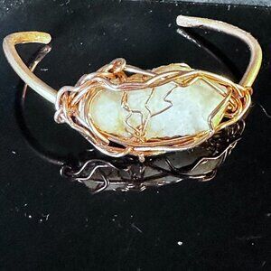 Genuine Milky Quartz Gemstone Copper Cuff Bracelet Handmade Rustic Healing Snow