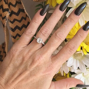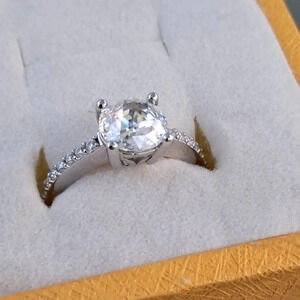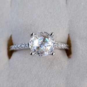 This Genuine 1.75ct Moissanite Is Securely Held In Place By A Classic 4 Prong Setting. Ring In Platinum Over 925 Sterling Silver. Shanks Sparkling With Genuine Moissanite Accents.
