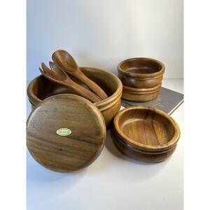 Genuine Monkey Pod Handcrafted Wood Made in the Philippines Salad Bowl Set of 7