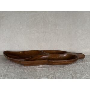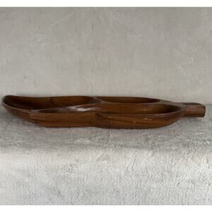 Genuine Monkey Pod Wood Bowl Leaf Shaped Divided Hand Crafted Philippines Boho