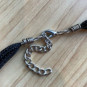 Large Murano Italian glass pendant. Silver and black with flecks of color in center. Never been worn.