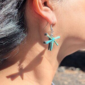 This is a beautiful Native American green turquoise Dangle Earrings with push back closure. Made of turquoise and sterling silver. Gorgeous workmanship. Handcrafted and signed by a Navajo tribe member, Native American Artisan Steve Francisco.