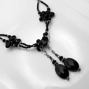 Onyx and blue goldstone on a sterling chain.