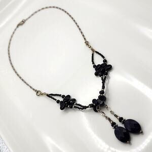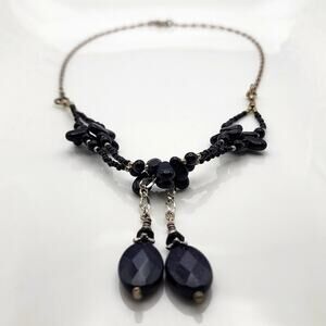 Genuine Onyx & Blue Goldstone Sterling Silver Boho Necklace