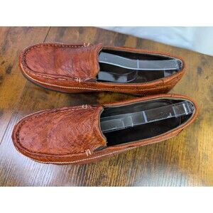 Genuine Ostrich Leather Loafers Men's Brown Exotic Slip-On Made In Mexico Sz 12