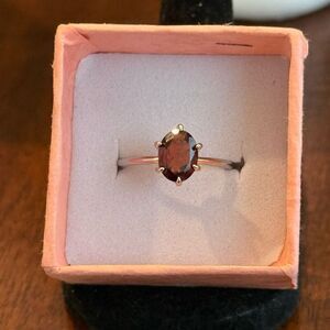 Genuine Oval Garnet Simple Sterling Silver Ring Size 6