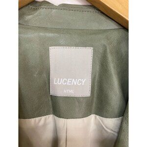 Genuine People Lucency Size Medium Green Faux Leather Open Front Blazer Jacket