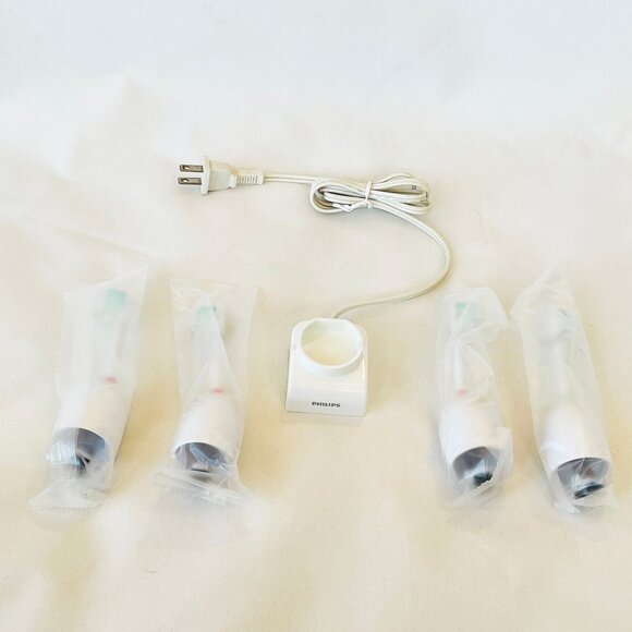 Genuine Philips Sonicare Essence Toothbrush Charger Base HX5100/C 4 Brush Heads