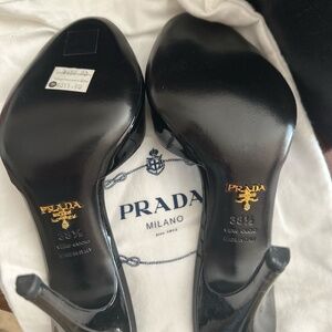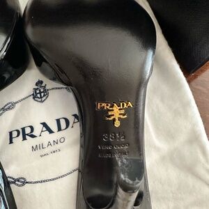 Genuine. Never worn. Classic black patent Prada Calzature Donna heels size 38 1/2". Heels - 4 1/2"