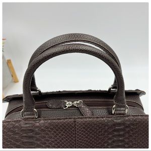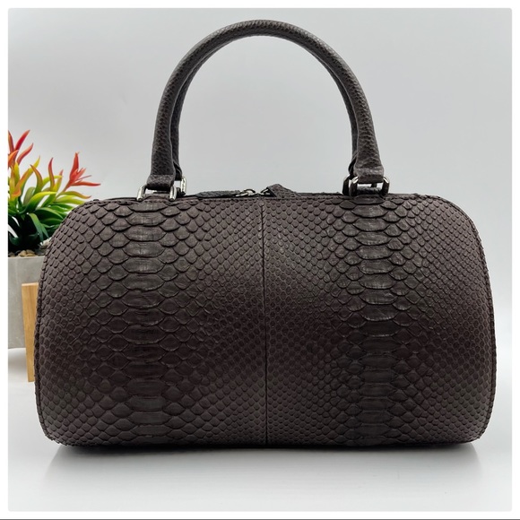 🔹Genuine python skin, double rolled handles, spacious and clean fabric interior with 1 side zipper pocket and 2 side open pockets.