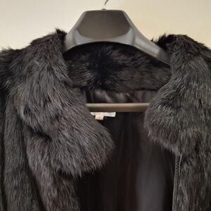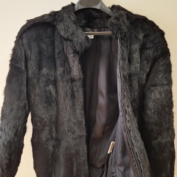 Genuine vintage rabbit fur coat in black. Zipper closure and has pockets. Size small.