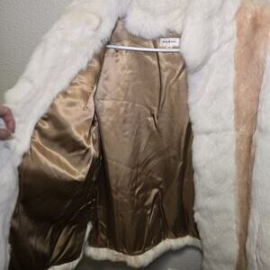 Genuine Rabbit Fur Jacket Cream & Tan French Origin Satin Lined Hook & Eye Med