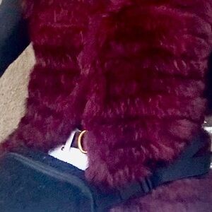 On trend rich Burgundy color. Great for layering and to add color. Hidden clasp to secure front. Fits size 0-6. Excellent condition.