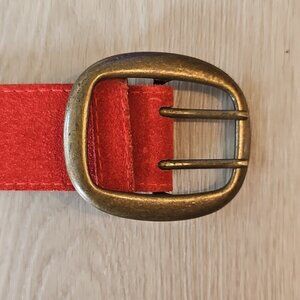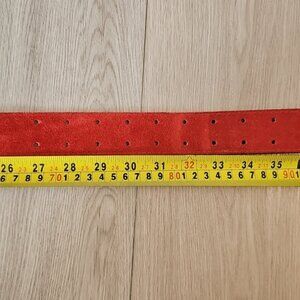 Genuine Red Suede Leather Belt. double tongue belt with brass hardware. bonded backing. measurements shown in photos, let me know if there are any additional measurements you may need!