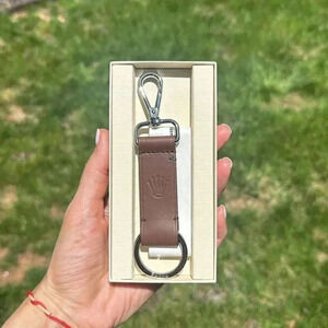 Genuine Rolex Embossed Leather Keychain with Chrome Clip and Original Packaging