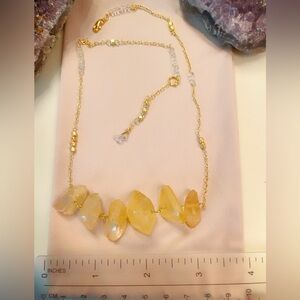 Illuminate your style with this exquisite rough citrine necklace, lots of sparkle, sunny golden handcrafted with genuine citrine gemstones that retain their raw, organic beauty. Each uniquely shaped stone radiates warm, golden tones, symbolizing abundance and positive energy.