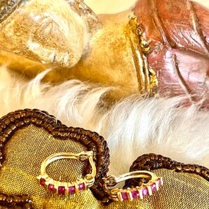 14K Gold over 925 Sterling Silver GENUINE RUBY earrings with snap closure. Five rubies are channel set in "huge" style 1/2" slight oblong hoops. These are PERFECT for everyday wear because of their comfort and affordability. BRAND NEW - never worn.