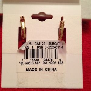 Beautiful Genuine Sapphire and Diamond Hoop Earrings. 18kt yellow gold over sterling silver. Brand new with tag.