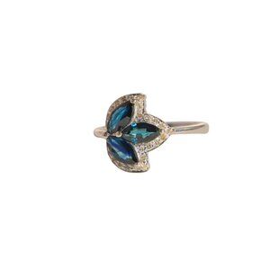Genuine Sapphire and Diamond Ring in 925 Sterling Silver
