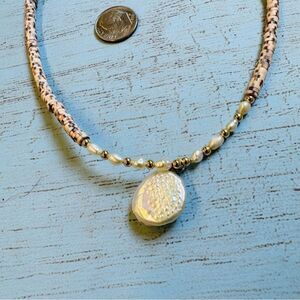 Genuine Seed and Button Pearl Pink Gray Hei Shi Beaded Necklace