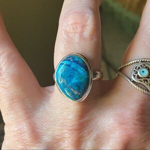 Genuine Shattuckite Sterling Silver Ring Size 9