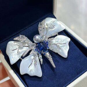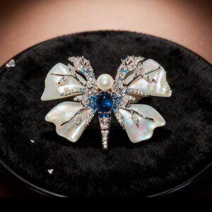Flutter into elegance with this breathtaking butterfly brooch, meticulously crafted with genuine Mother of Pearl.