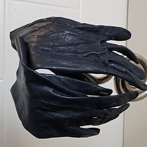 Genuine Soft Supple Thin Leather Driving Gloves Top Detail Dark Nay Blue