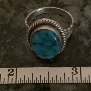 Genuine Spider Web Turquoise Ring ~ Beautiful Cloud Mountain Blue Oval Turquoise Stone in Traditional Navajo Rope Setting Surrounds Smooth Bezel ~ Stamped Sterling ~ 3mm Band Width ~ Size 6 1/2 ~ .21 oz ~ OFFERS ACCEPTED