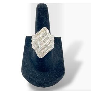 Genuine Statement Diamond Ring Size 6.5 Wide Band Comfort Fit 925 Silver