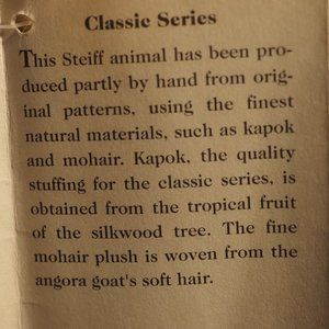 Hello, Welcome to my listing, up for sale is this cute Stieff Teddy Bear. He has all his tags and is in excellent condition. His arms and feet move. He is 11 inches tall. A great collectible. If you have any questions, please ask. Thank you and have a wonderful day.