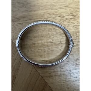 Item: Hinged bangle bracelet in sterling silver with twisted rope/cable design and polished edges.