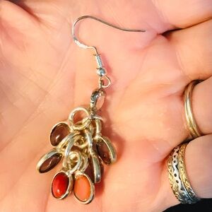 Genuine Stones dangle earrings 2 1/2" long artesian made 925