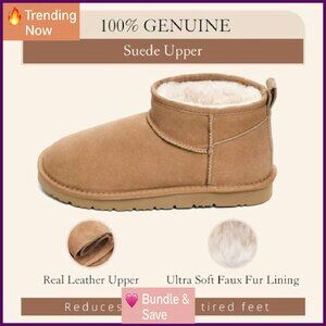 Genuine Suede Ankle Boots Women's Winter Snow Boots Fur Lined