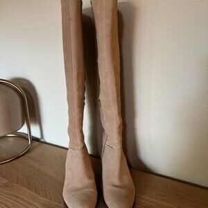 Genuine Suede Leather. Tan / light brown color. Tall Knee High Boots. Perfect for coastal cowgirl and fall aesthetic. So cute with dresses, skirts, and shorts!