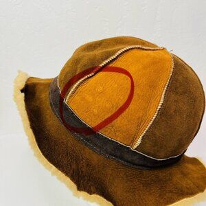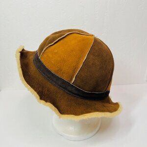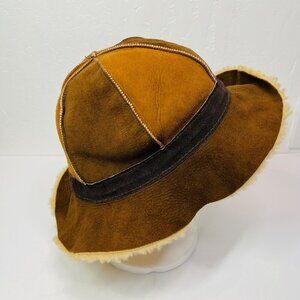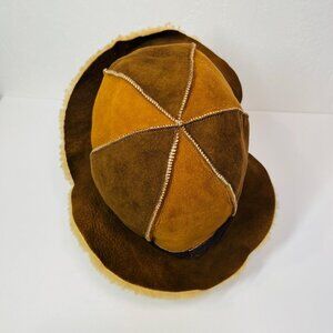 Genuine Suede shearling sheepskin Bucket hat Brown for Women Size S. y2k