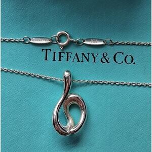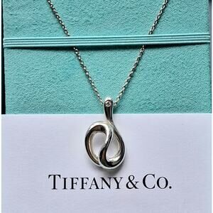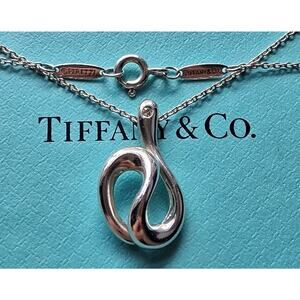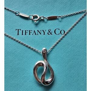 Genuine Tiffany & Co. Silver Elsa Peretti DIAMOND Open Wave Pendant Necklace 18” with Tiffany Gift Box!