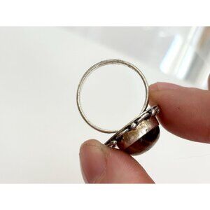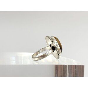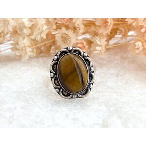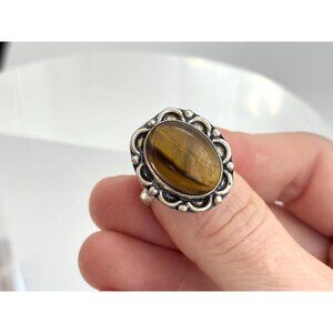 Genuine Tiger's Eye Scalloped Frame 925 sterling Silver SW Vintage Ring - sz 7