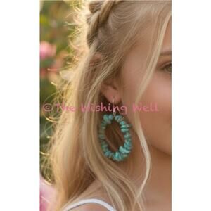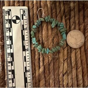 Genuine Turquoise Chip Hoop Dangle 925 Silver Earrings 2”
