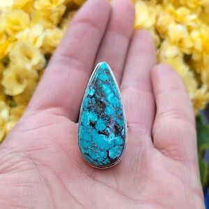 Gorgeous Large Genuine Turquoise Gemstone set in stamped Sterling Silver 925. 1 of a kind.