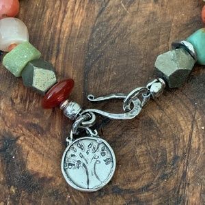 Genuine Turquoise, Pyrite, Agate, Peridot, Quartz and Family Tree Charm